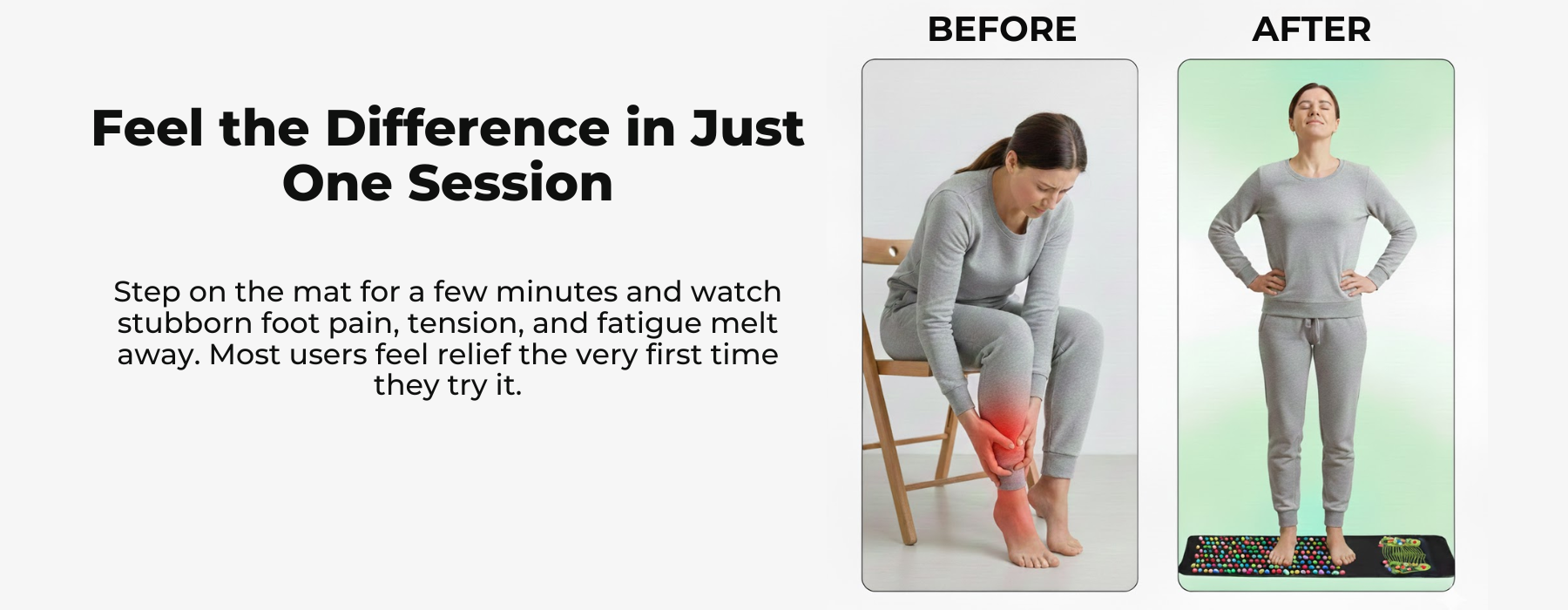 Yes. The mat targets the exact pressure points connected to heel and arch pain. Customers with chronic plantar fasciitis consistently report reduced morning pain and easier movement throughout the day.
